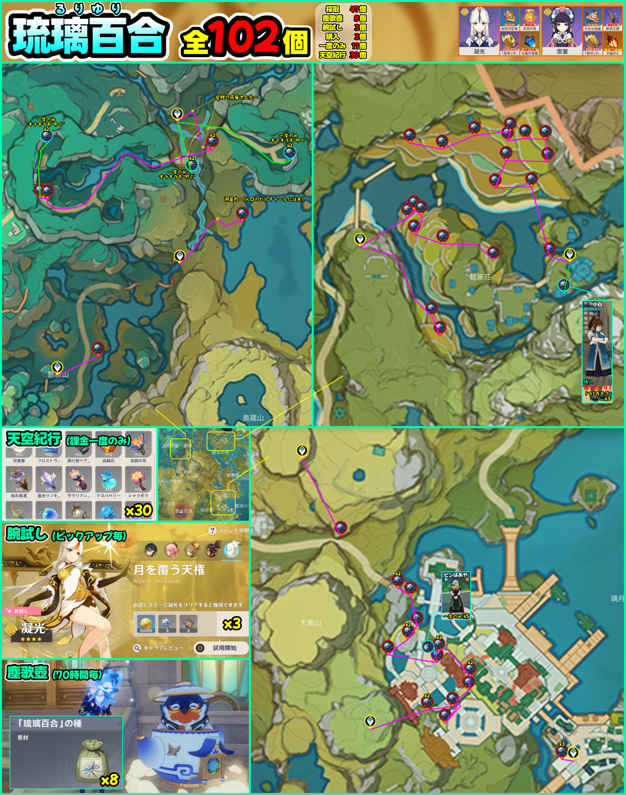 琉璃百合は、茲白・凝光や雲菫の育成素材となりますので、ぜひ参考にしていただけると幸いです!